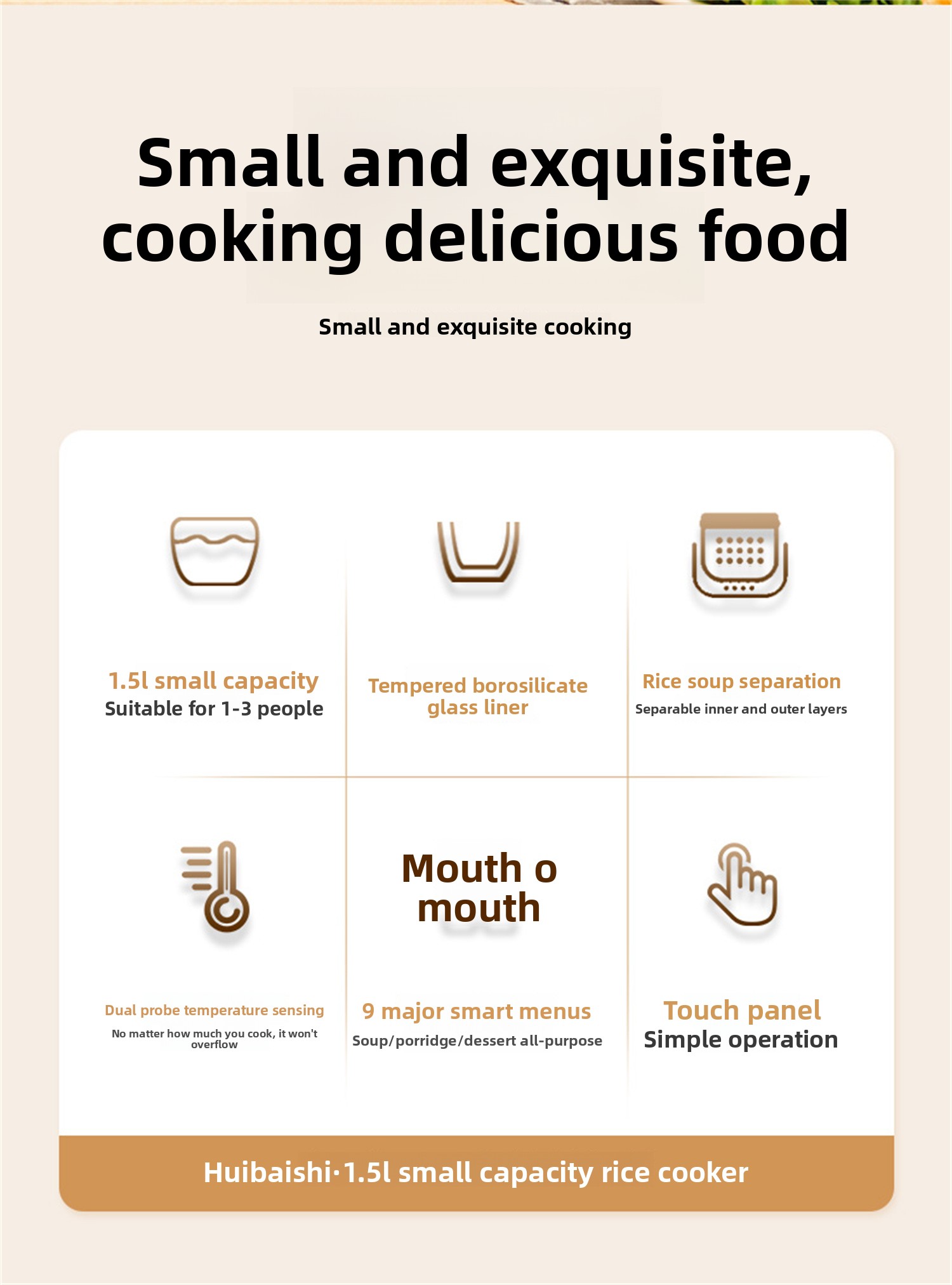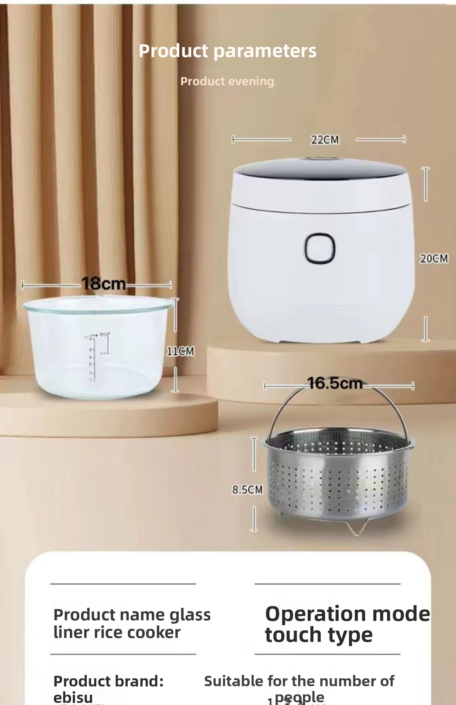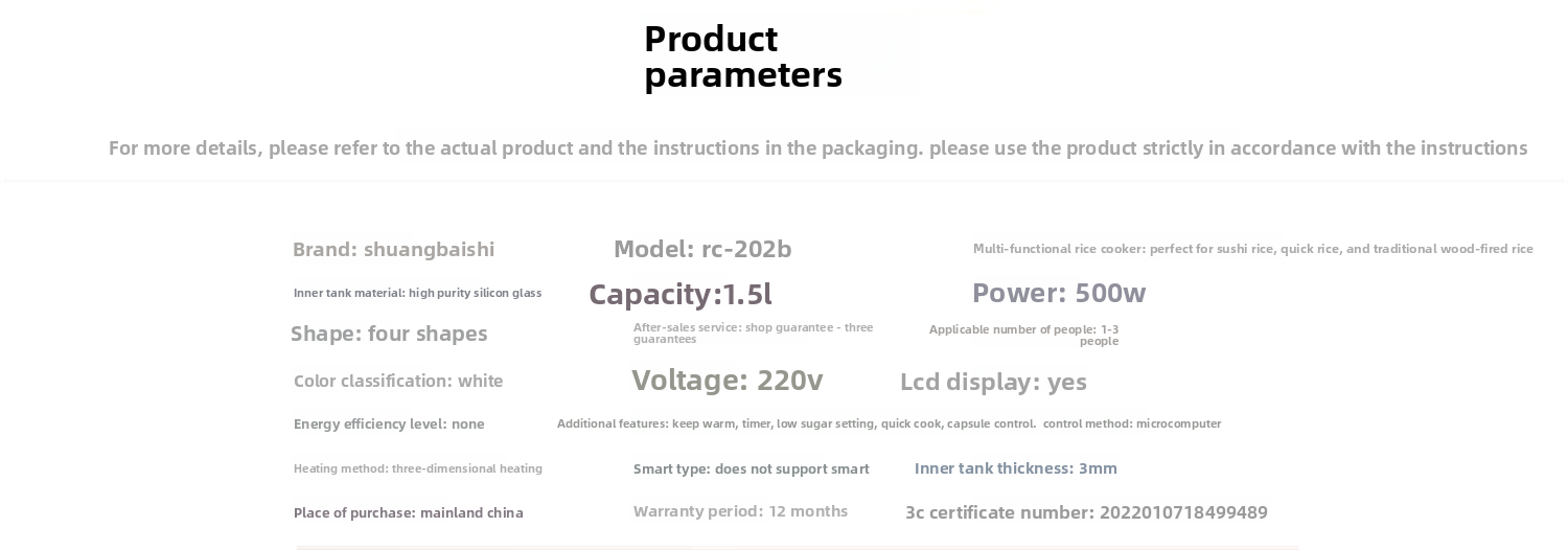 1.5 liter glass liner small capacity mini low sugar multi-functional baby pot 1-3 people household 0 coated rice cooker