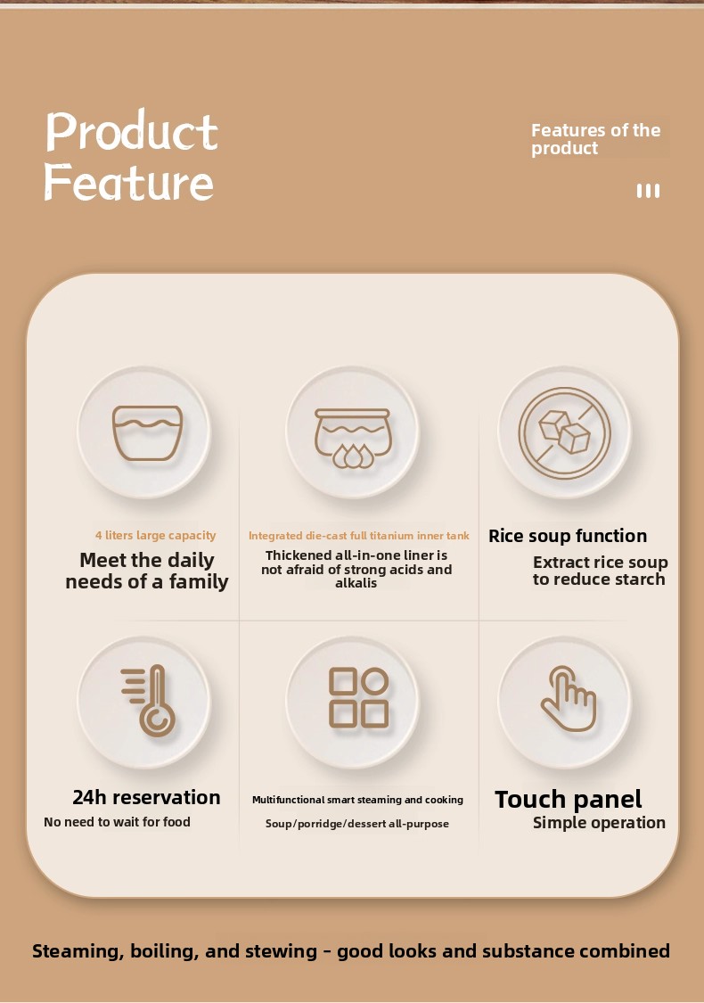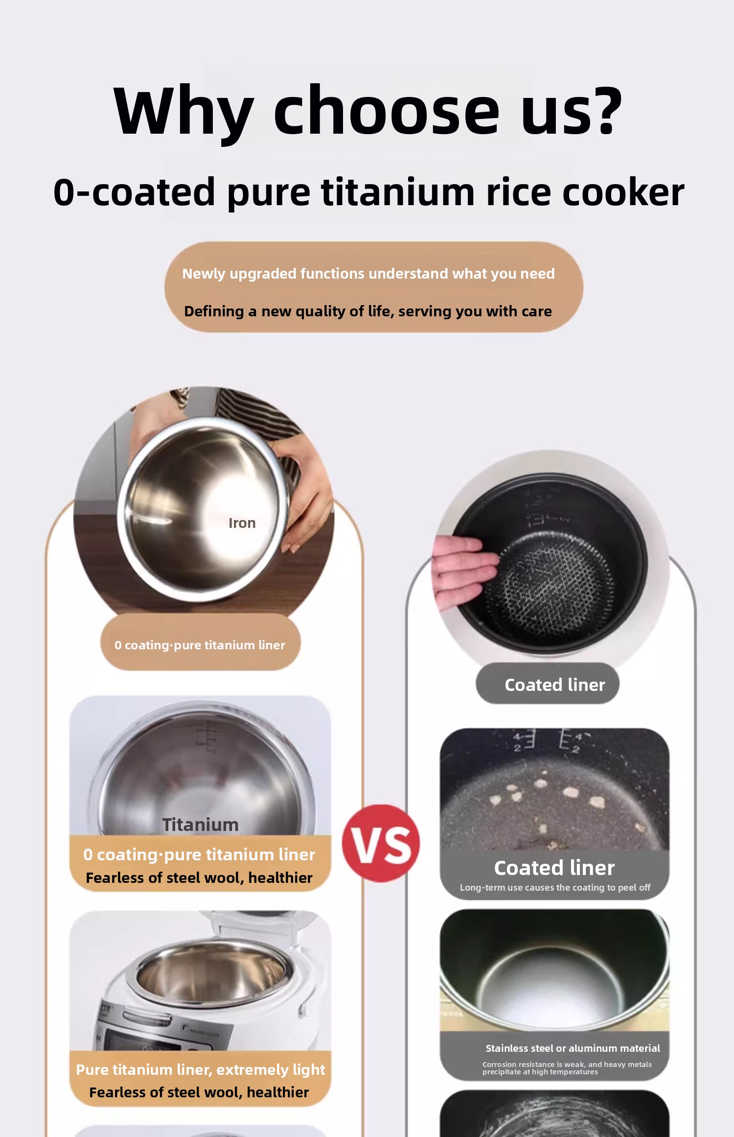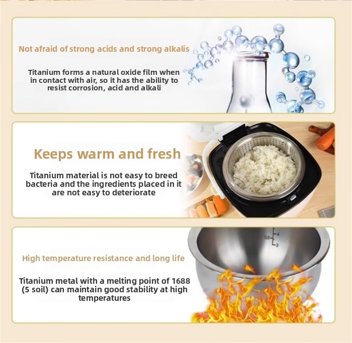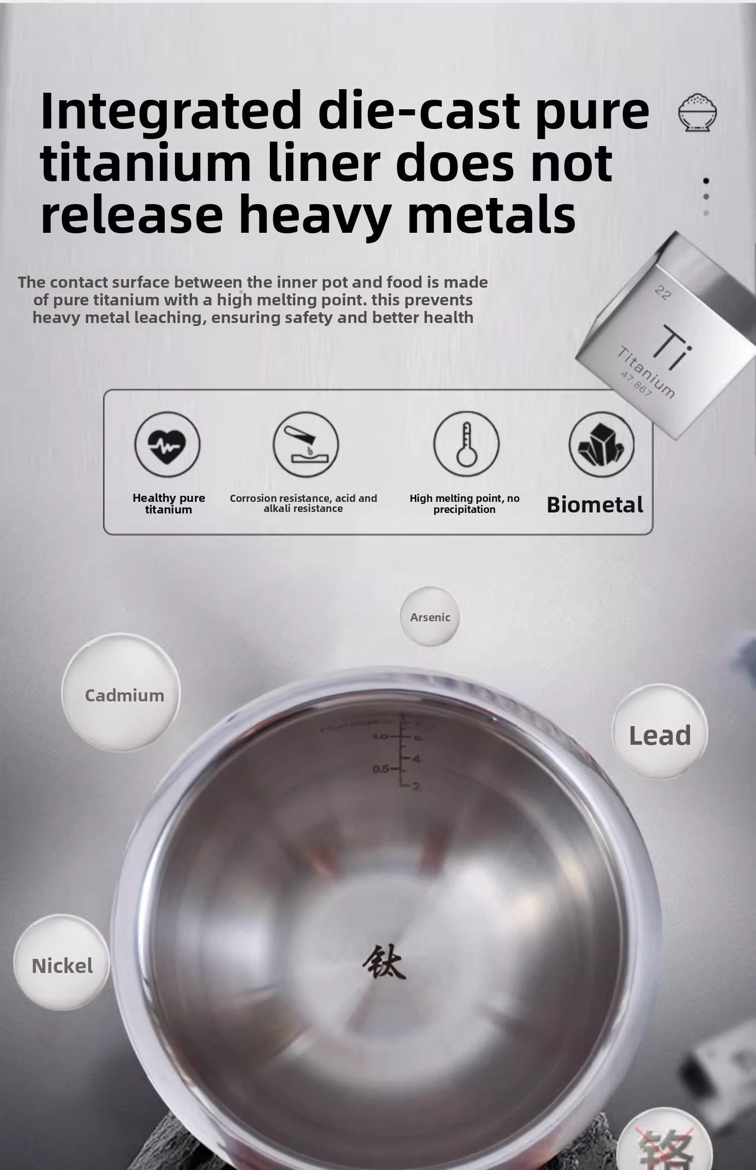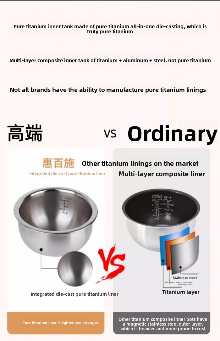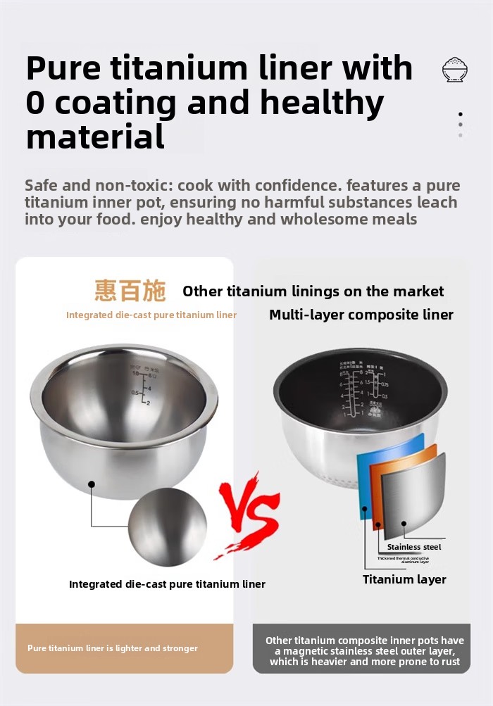 Hong Kong Huibaishi 4 liters pure titanium liner rice cooker uncoated non-stick multi-functional low-sugar healthy titanium rice cooker
