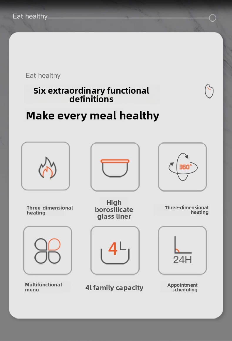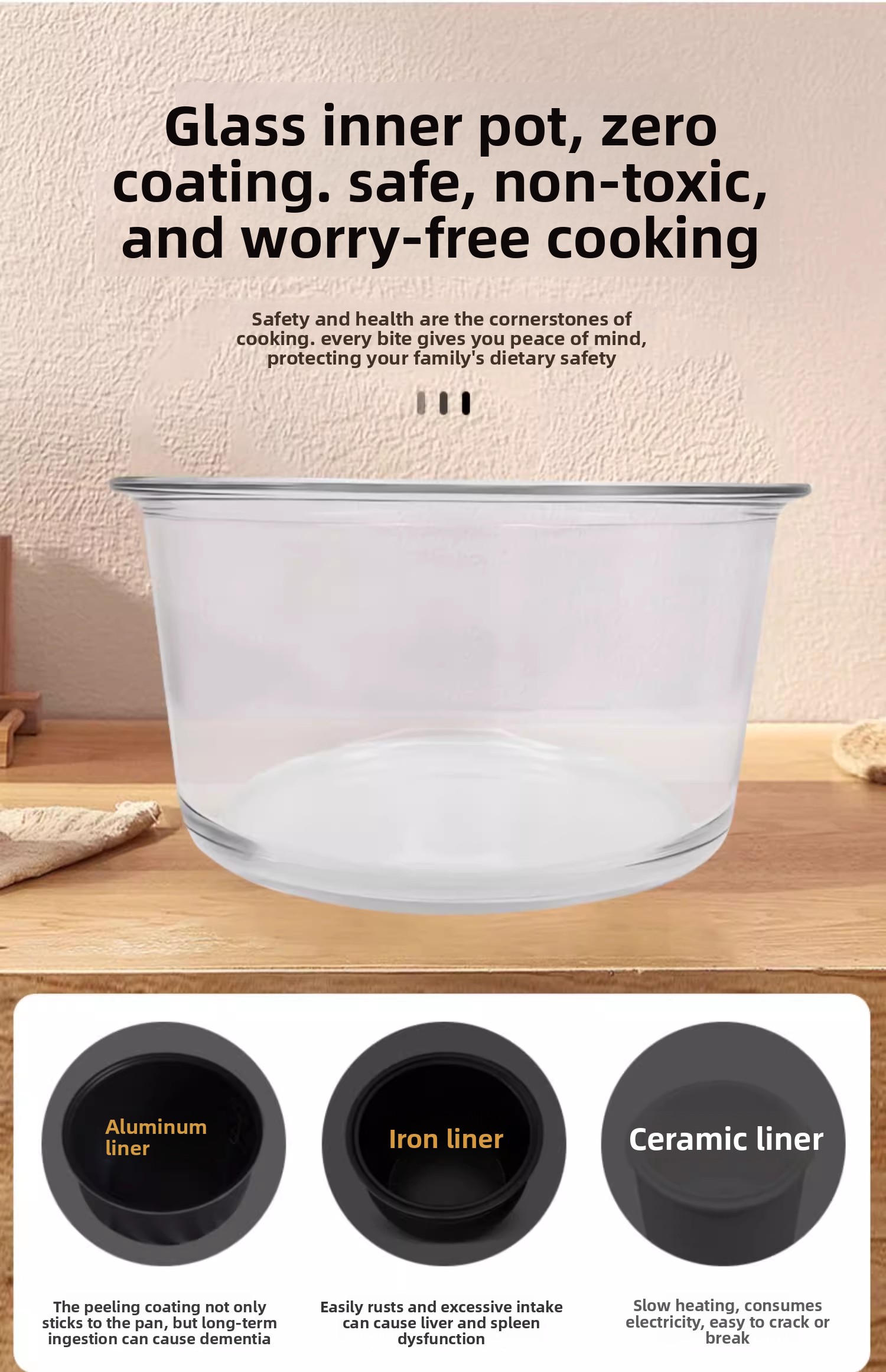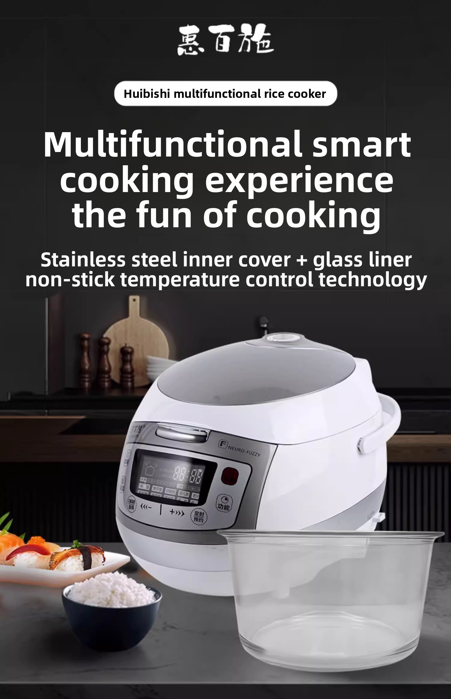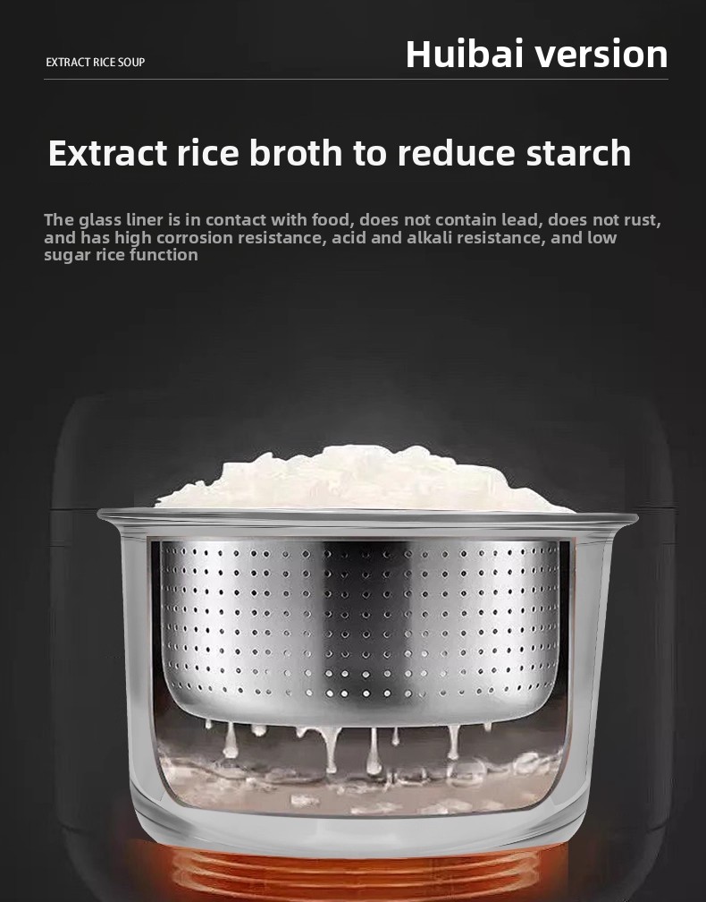 Huibaishi 4-liter glass liner rice cooker uncoated rice non-stick pot healthy multi-functional glass rice cooker
