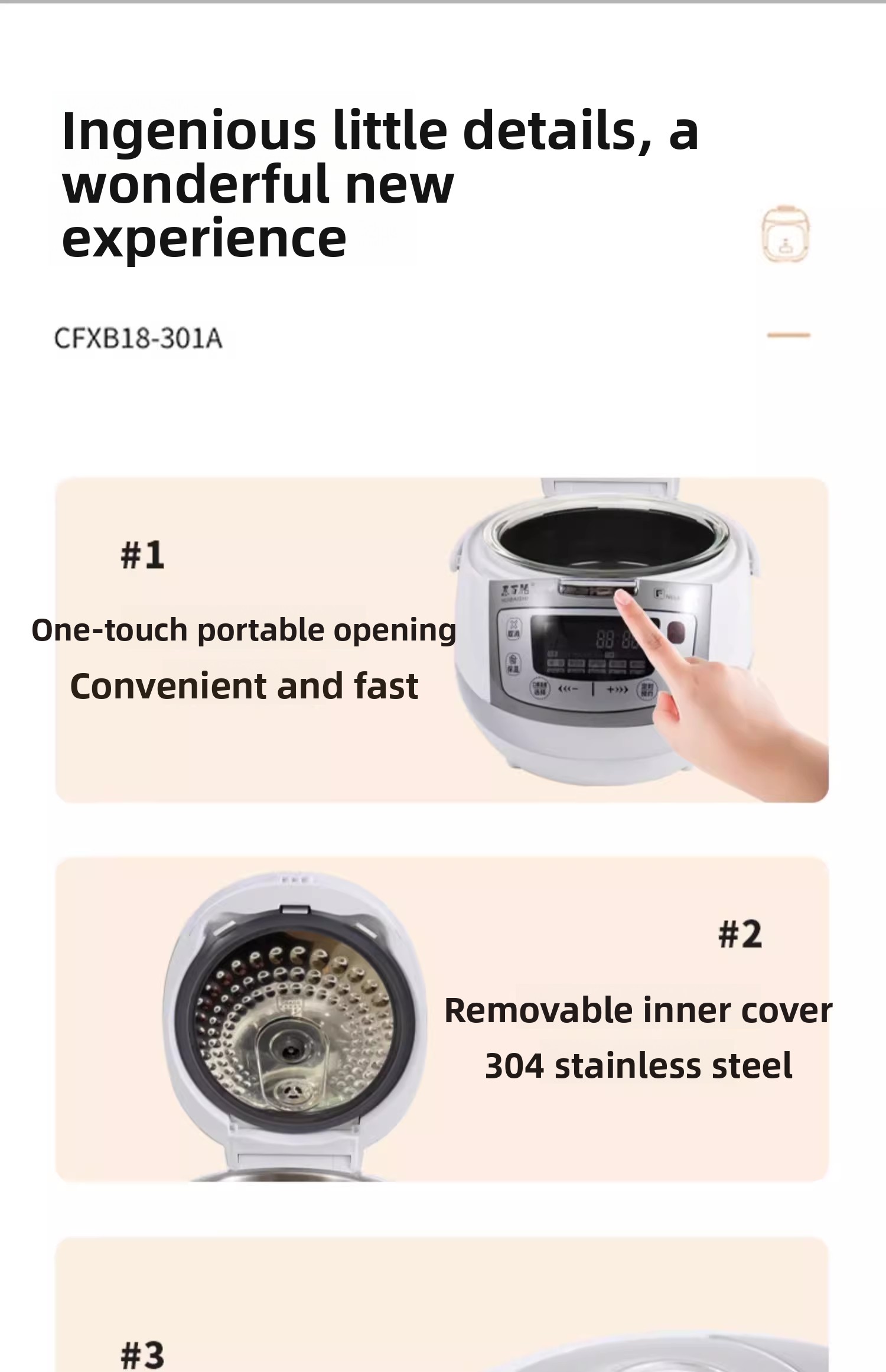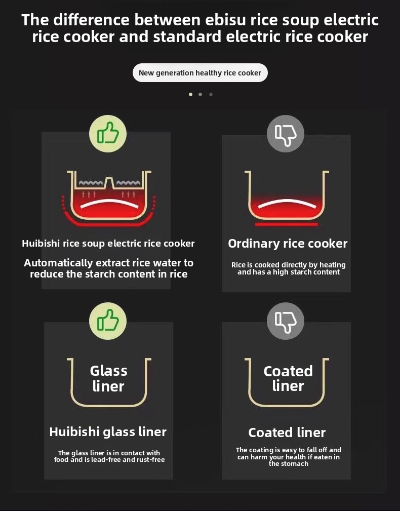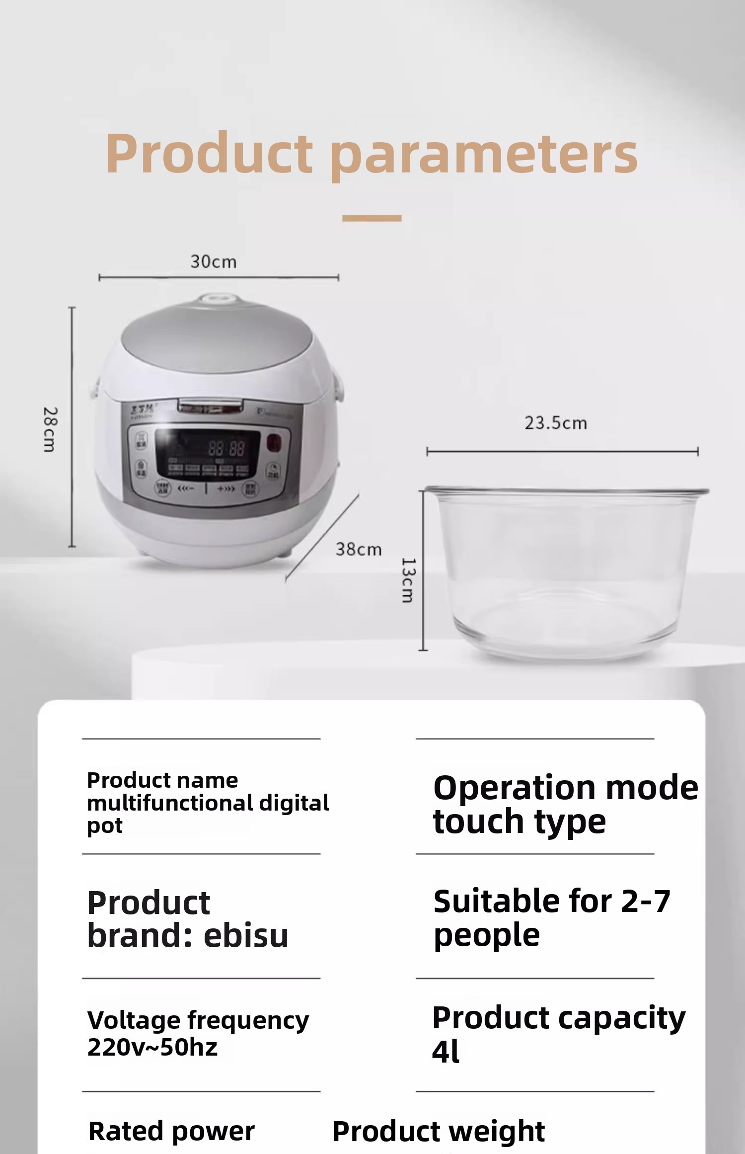 Huibaishi 4-liter glass liner rice cooker uncoated rice non-stick pot healthy multi-functional glass rice cooker