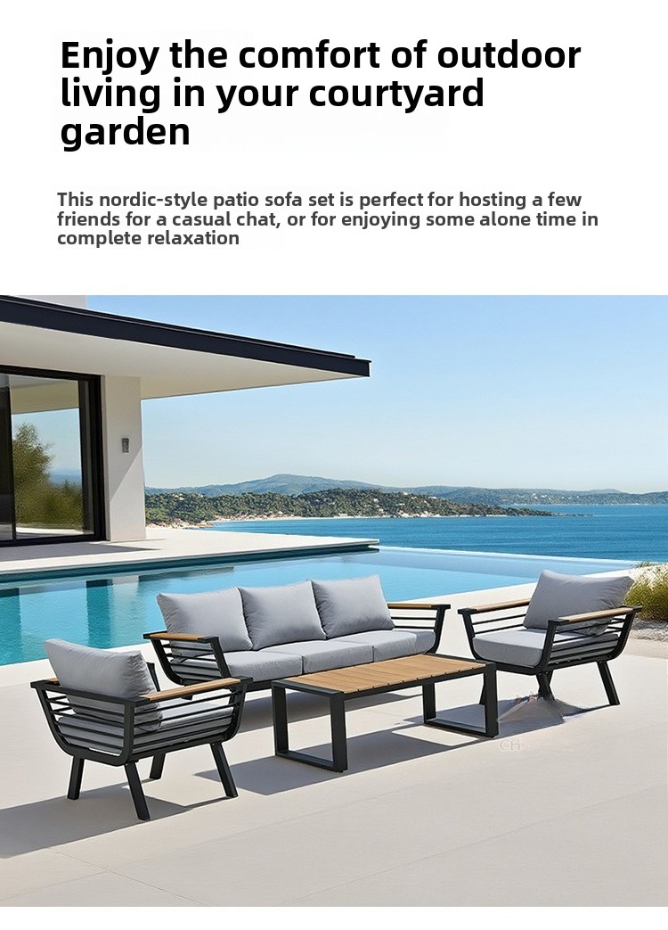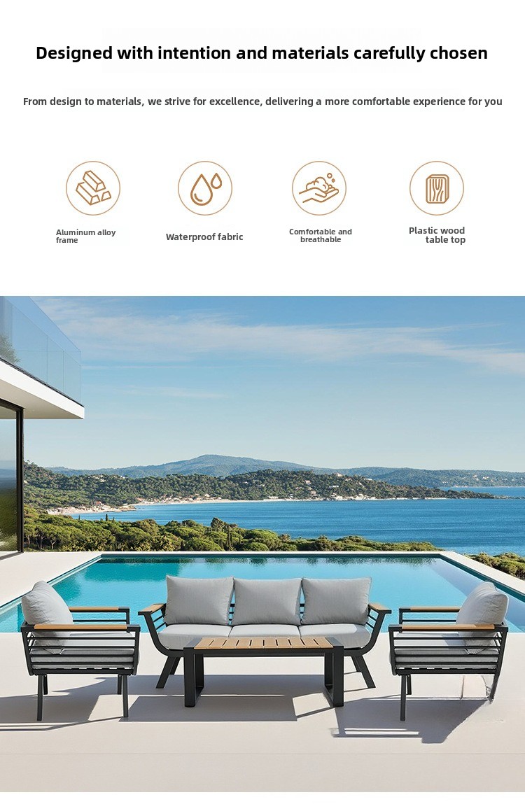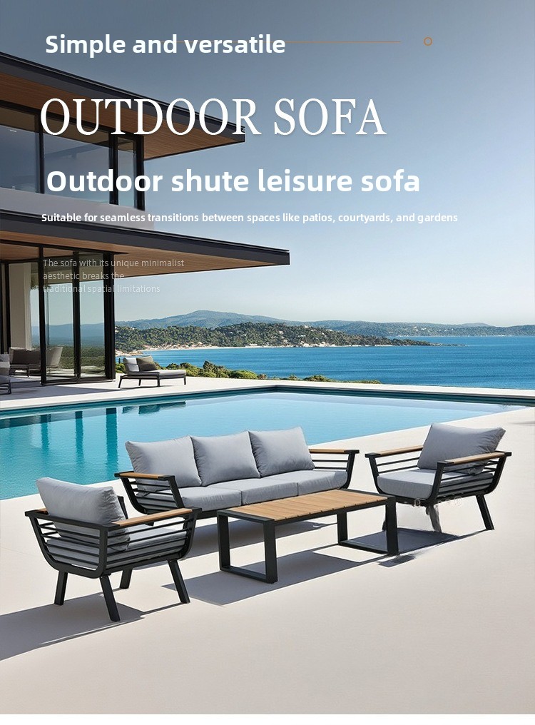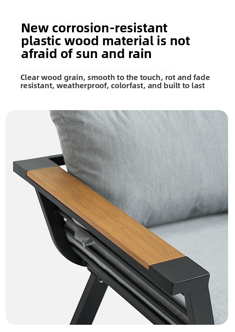 Outdoor sofa aluminum alloy wood-plastic garden swimming pool villa waterproof and sun-proof courtyard hotel bed and chair