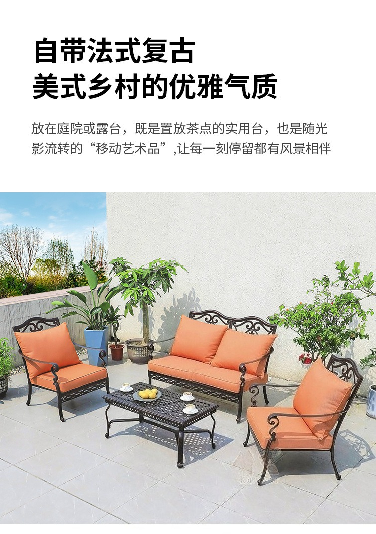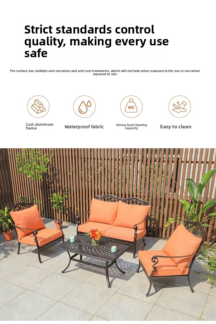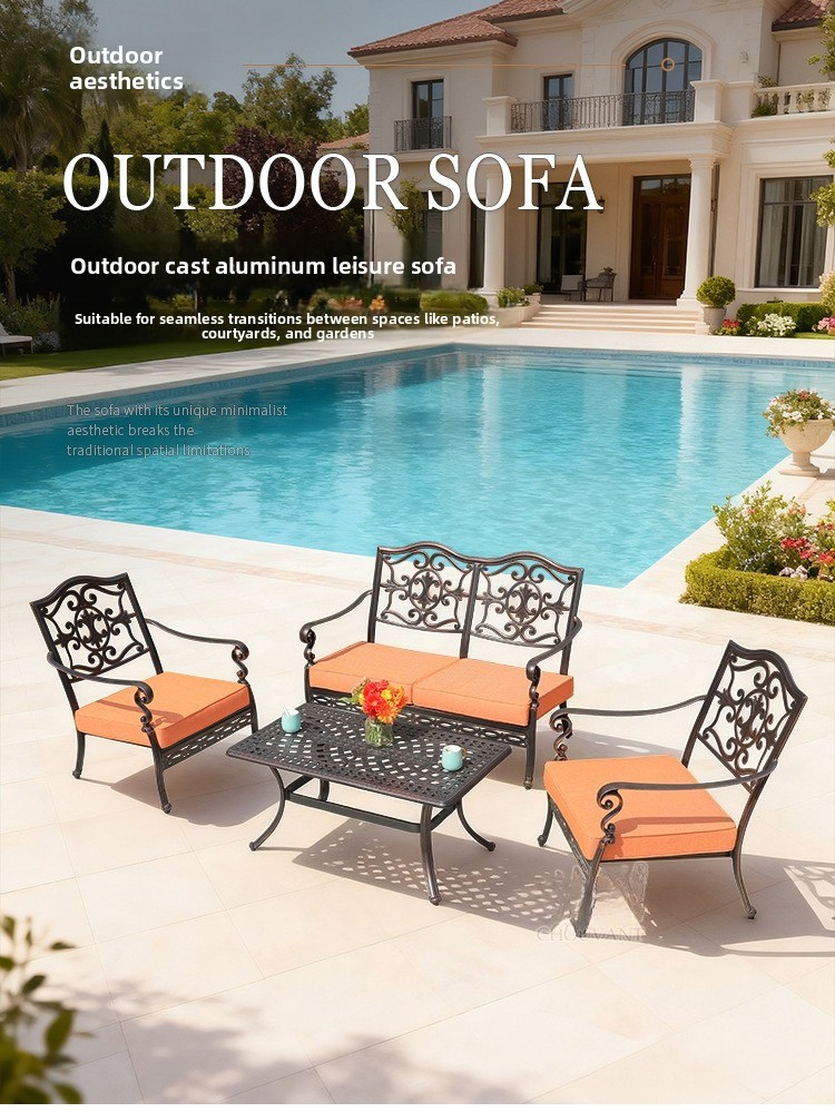 Outdoor sofa cast aluminum sofa garden swimming pool villa waterproof and anti-rust courtyard hotel leisure sofa tea set