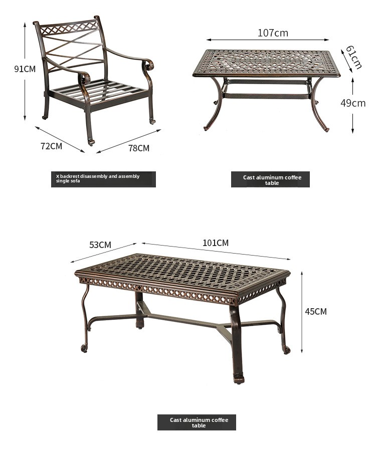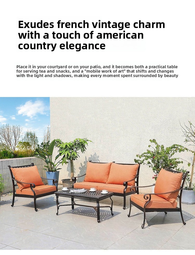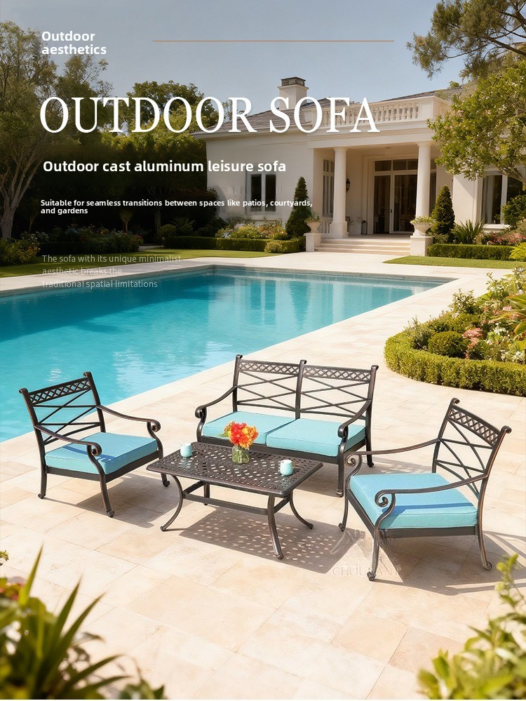 Outdoor sofa cast aluminum sofa garden swimming pool villa waterproof and anti-rust courtyard hotel leisure sofa tea set