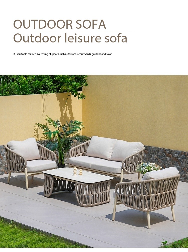 Outdoor sofa rattan drawstring sofa chair B & B villa swimming pool waterproof club courtyard outdoor leisure sofa bed