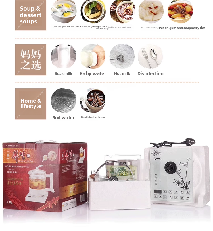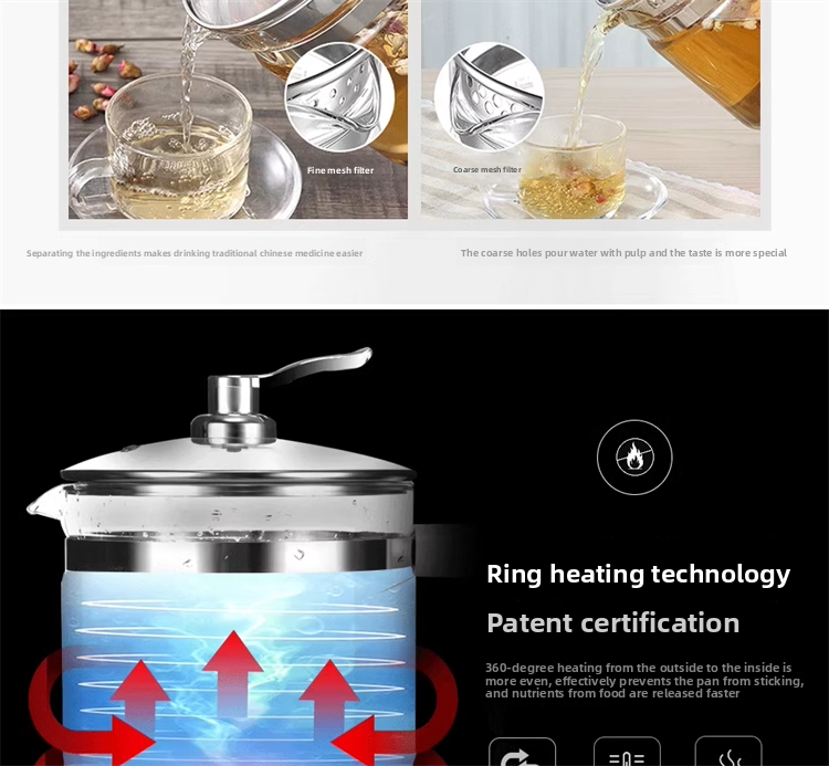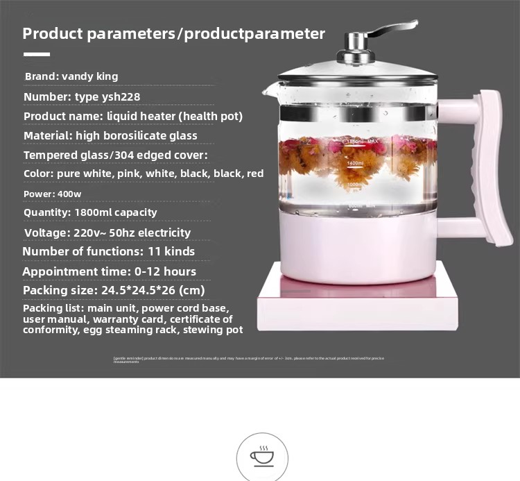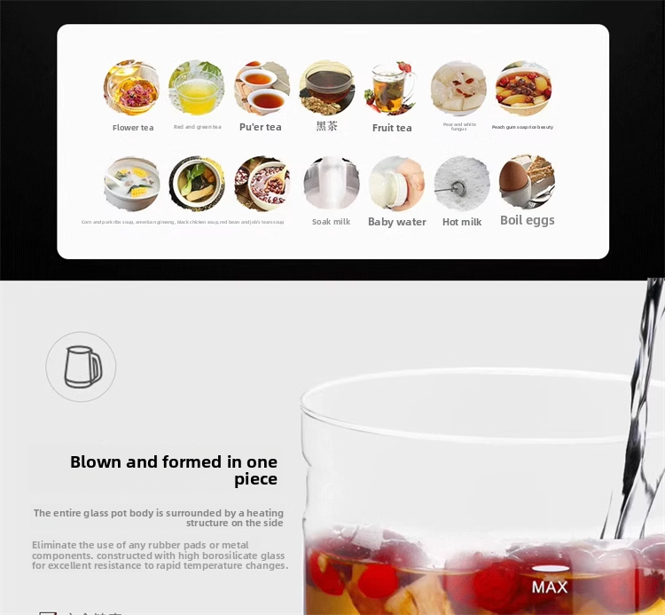 Wandi Wang health pot, electric kettle, flower teapot, full glass body, no metal, no rubber ring, fully automatic and multi-functional